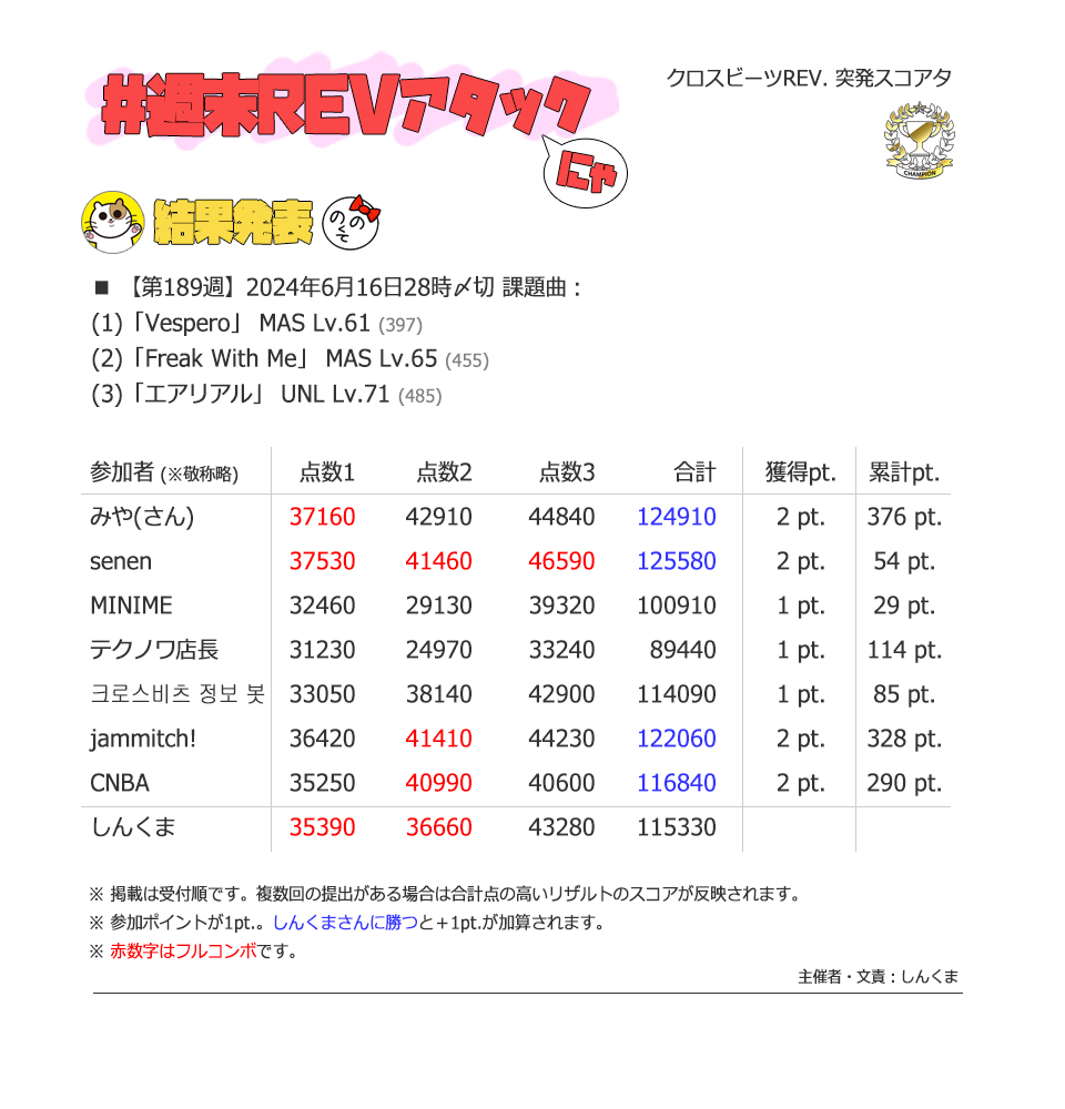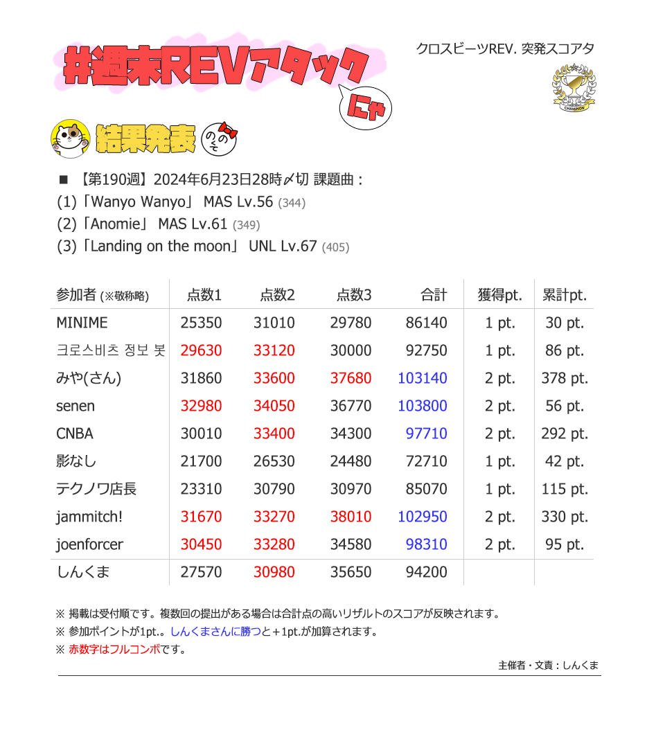 | #190 | 2024/6/23 | iOS版でミッション報酬曲特集 | Wanyo Wanyo 56 |