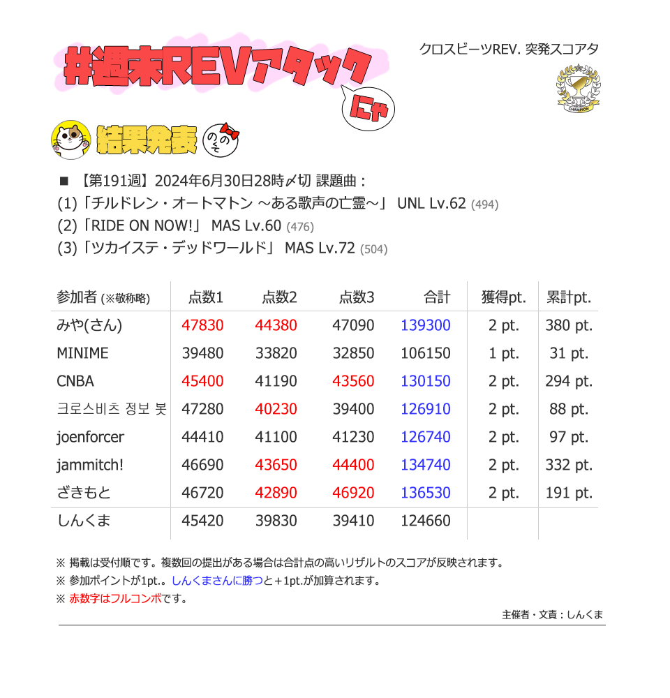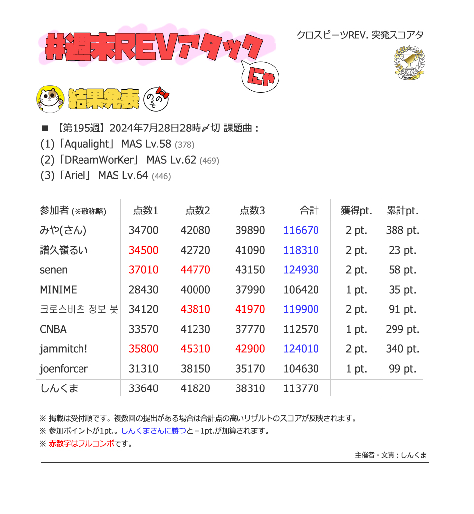 | #50 | 2021/9/5 | 週末REVアタック1周年 | エアリアル 71 |