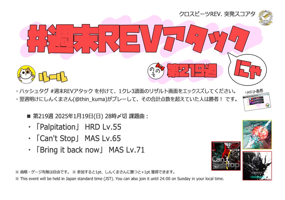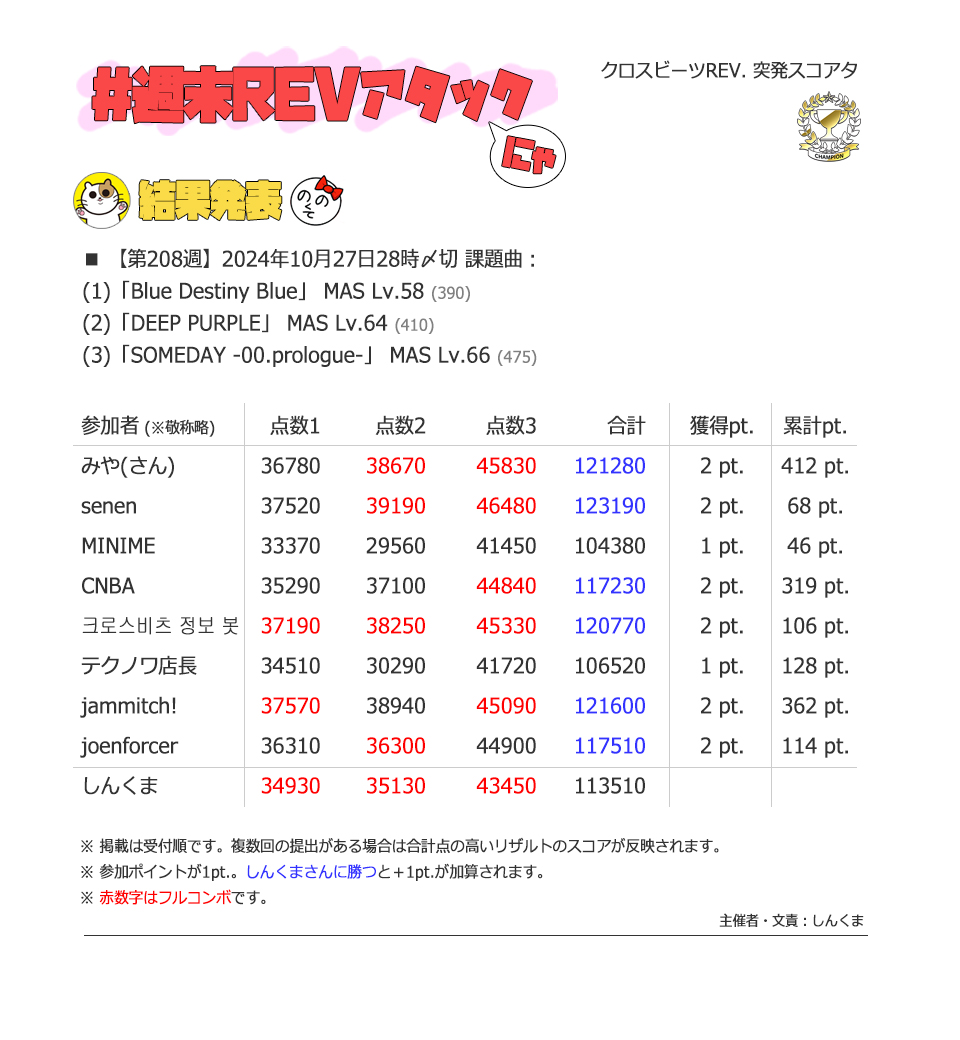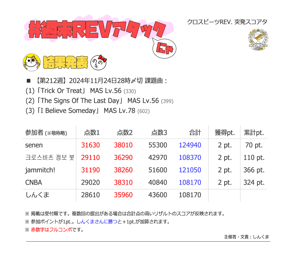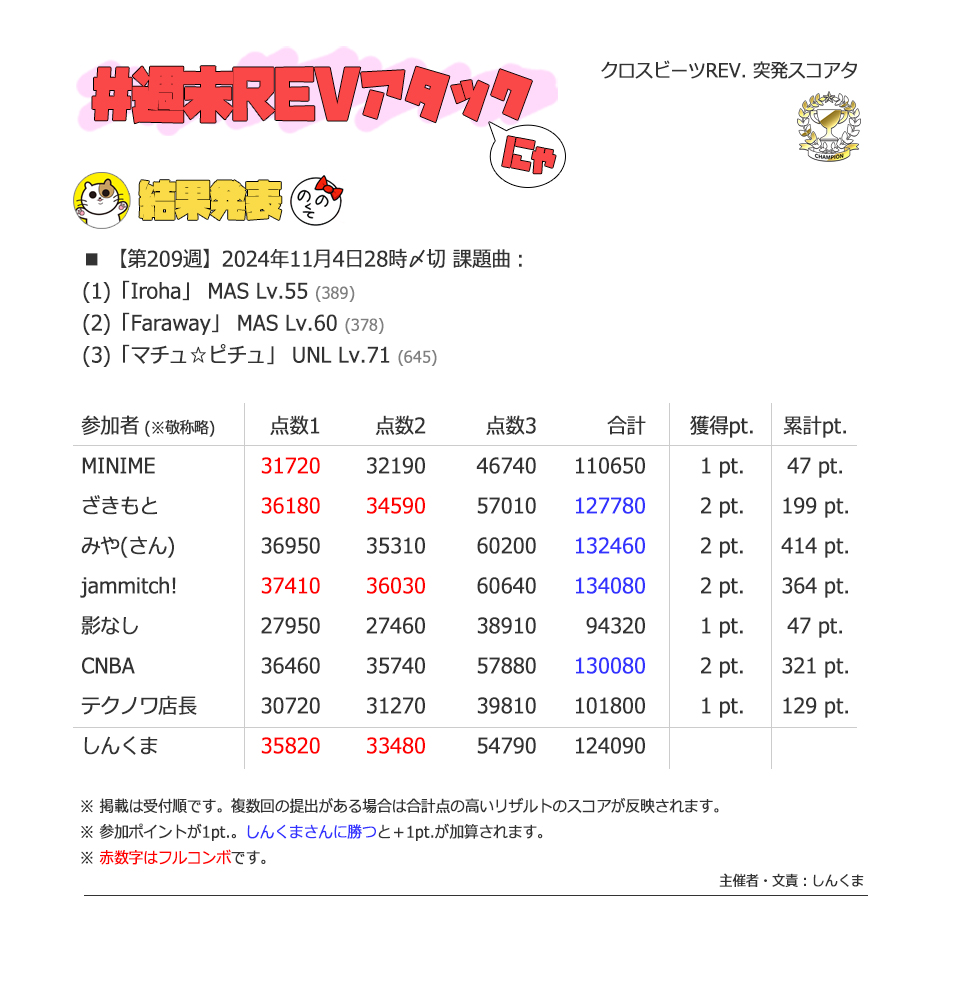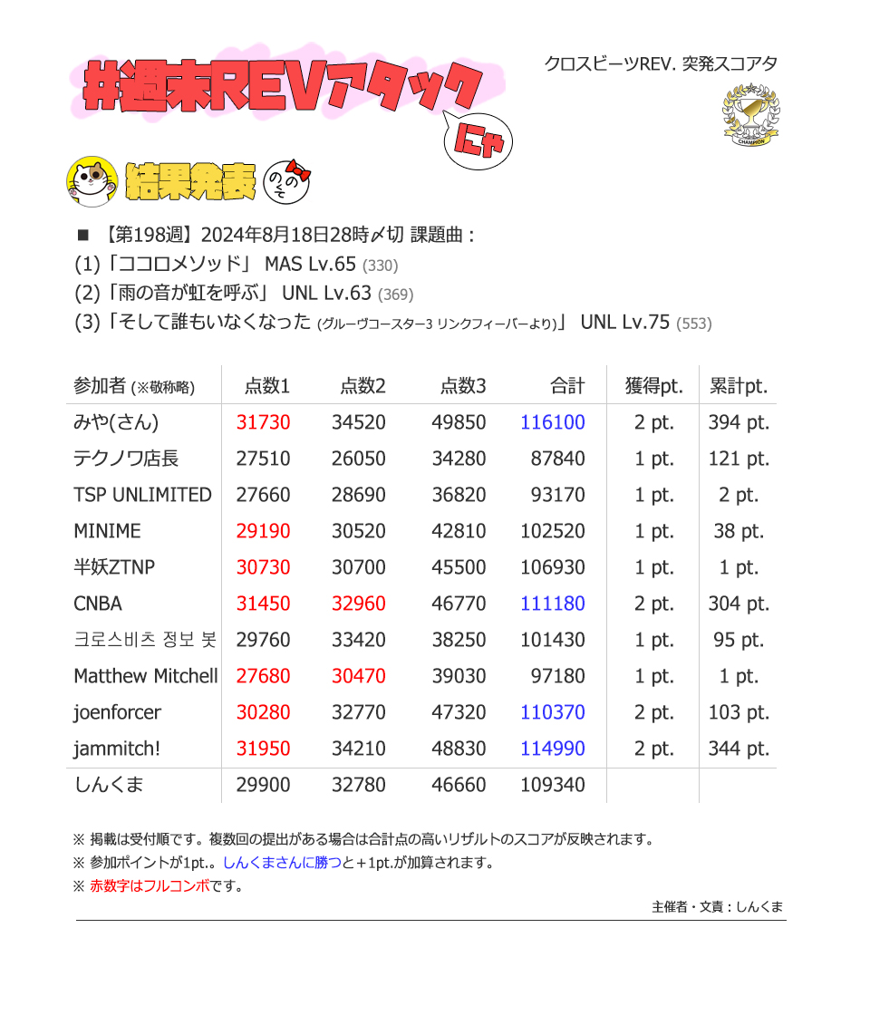 | #3 | 2020/9/27 | ちょっと変化球だけどハマると楽しい譜面 | Cthugha 73 |