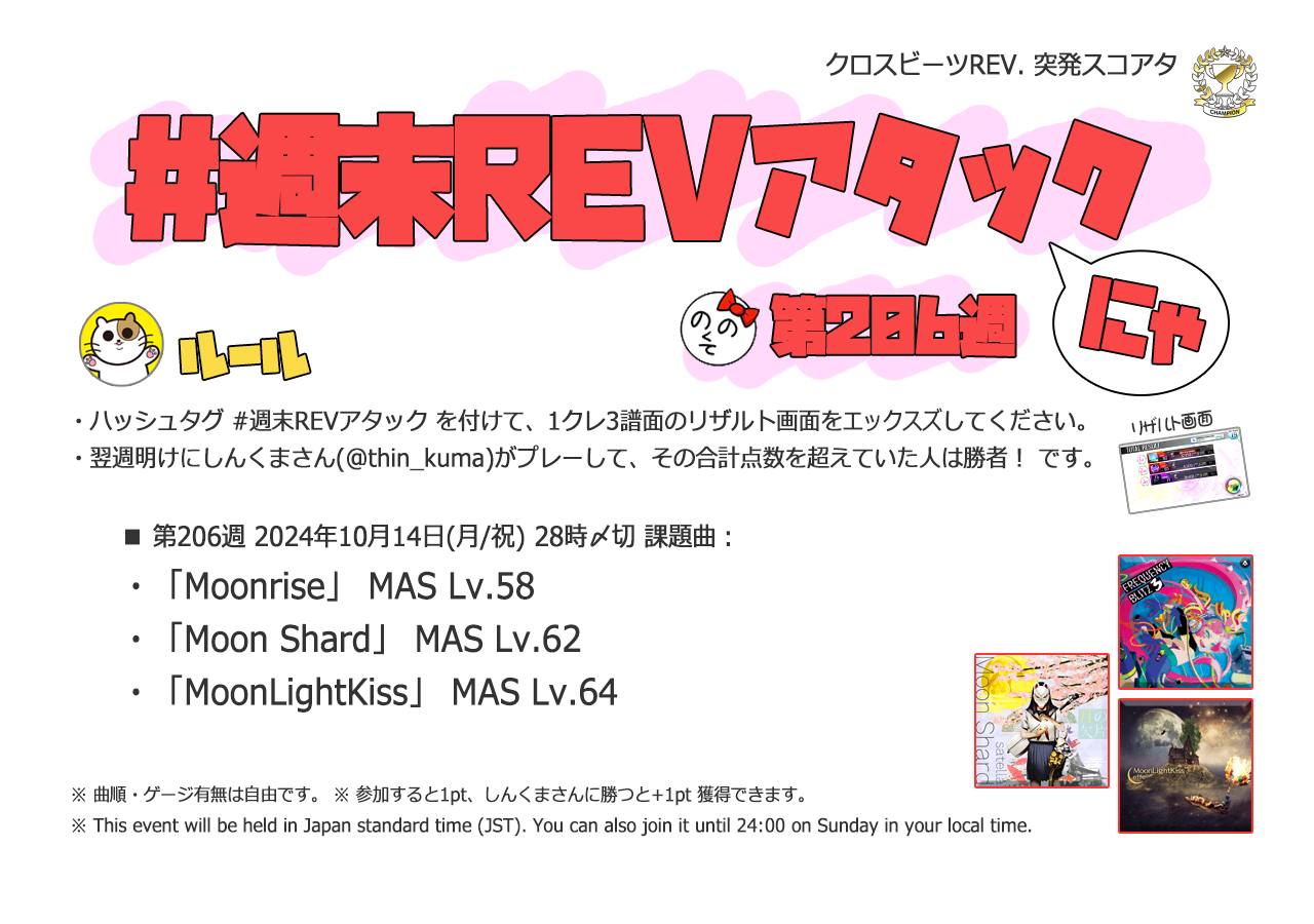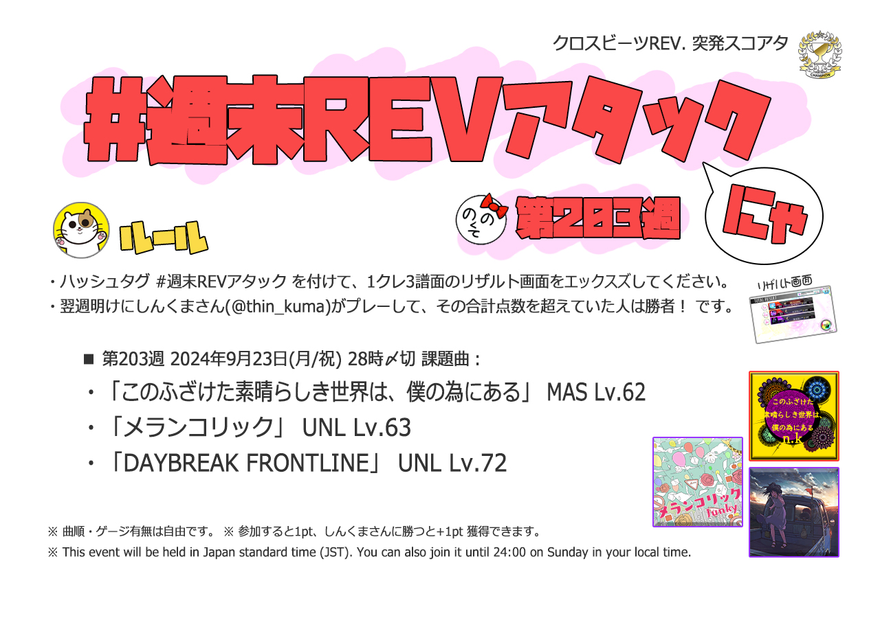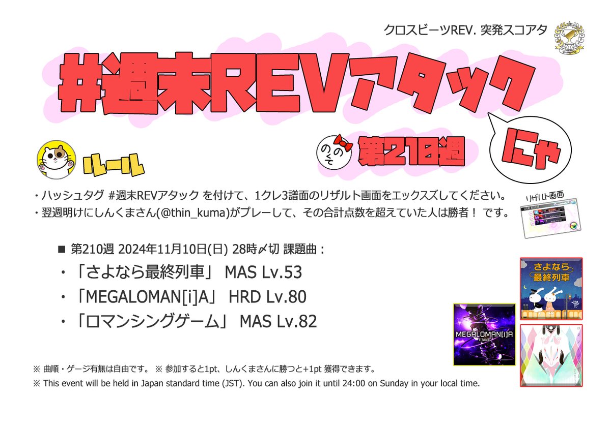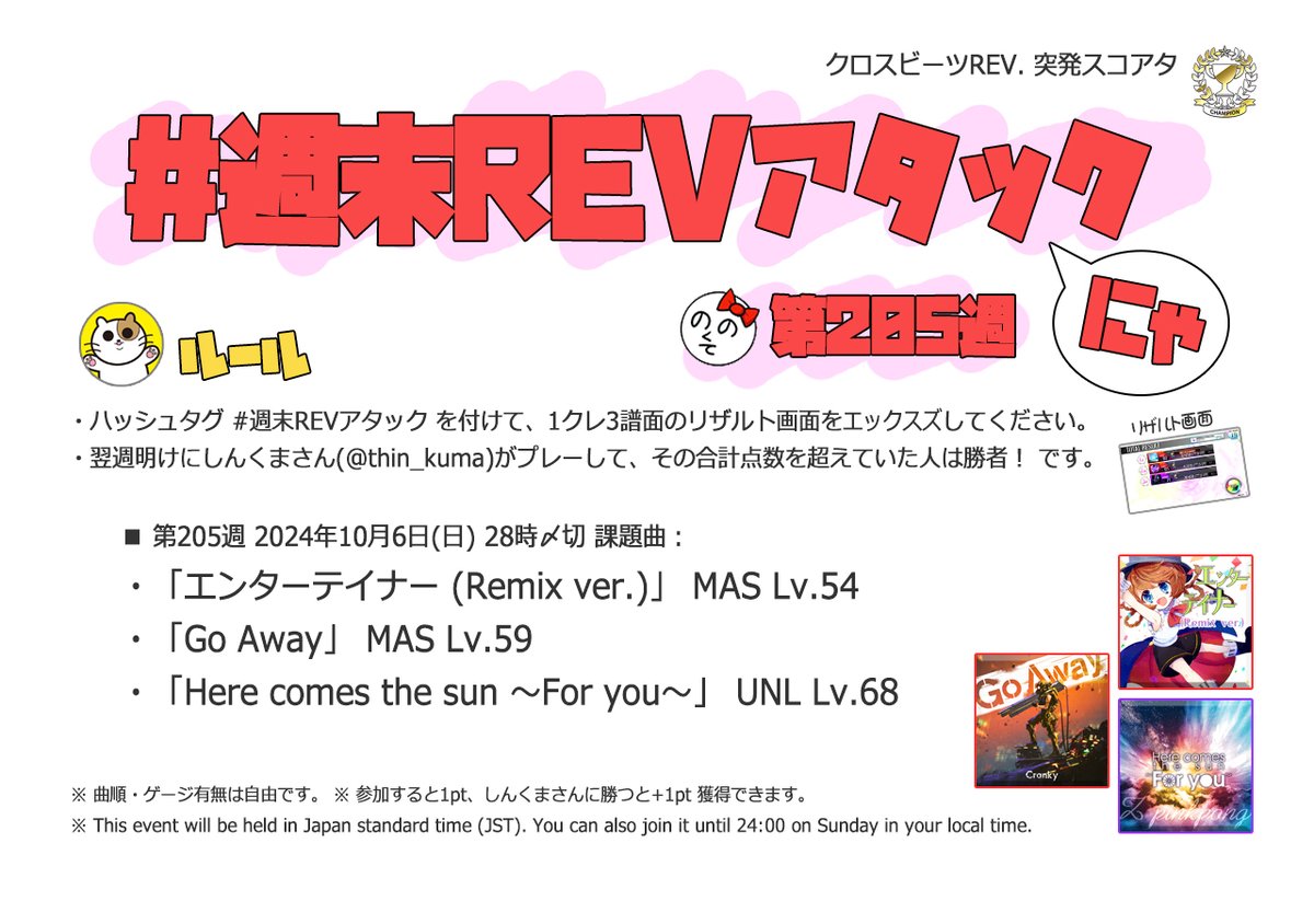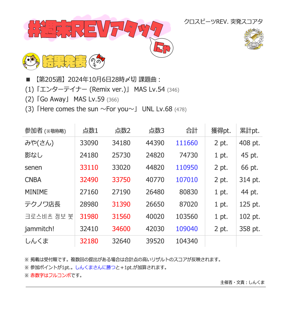 | #205 | 2024/10/6 | オオタニサン!Lv.54(HR)・Lv.59(盗塁)・BPM130(打点) | エンターテイナー(Remix ver.) 54 |