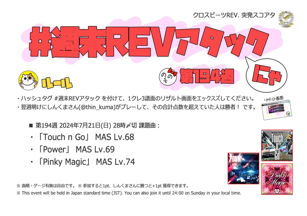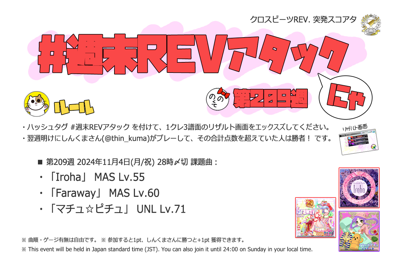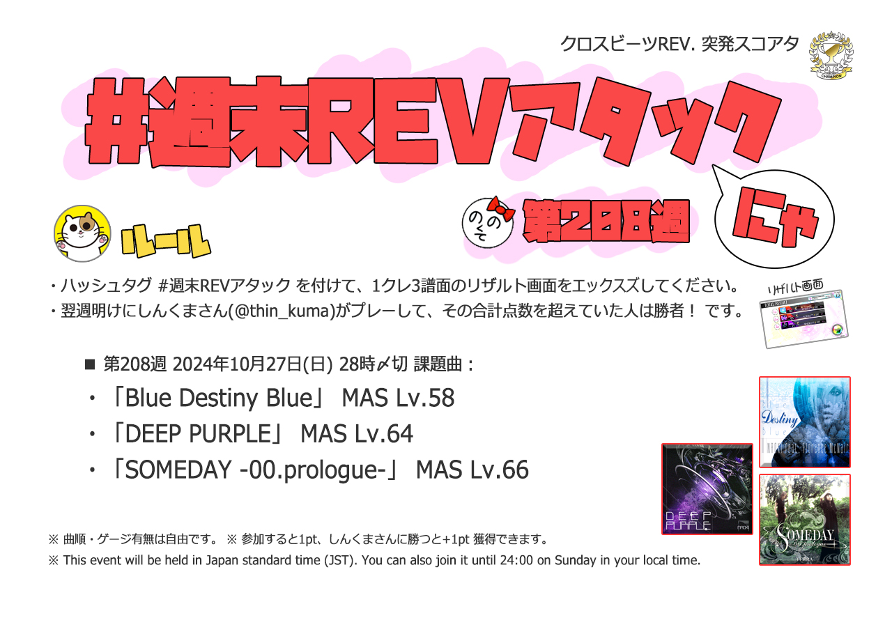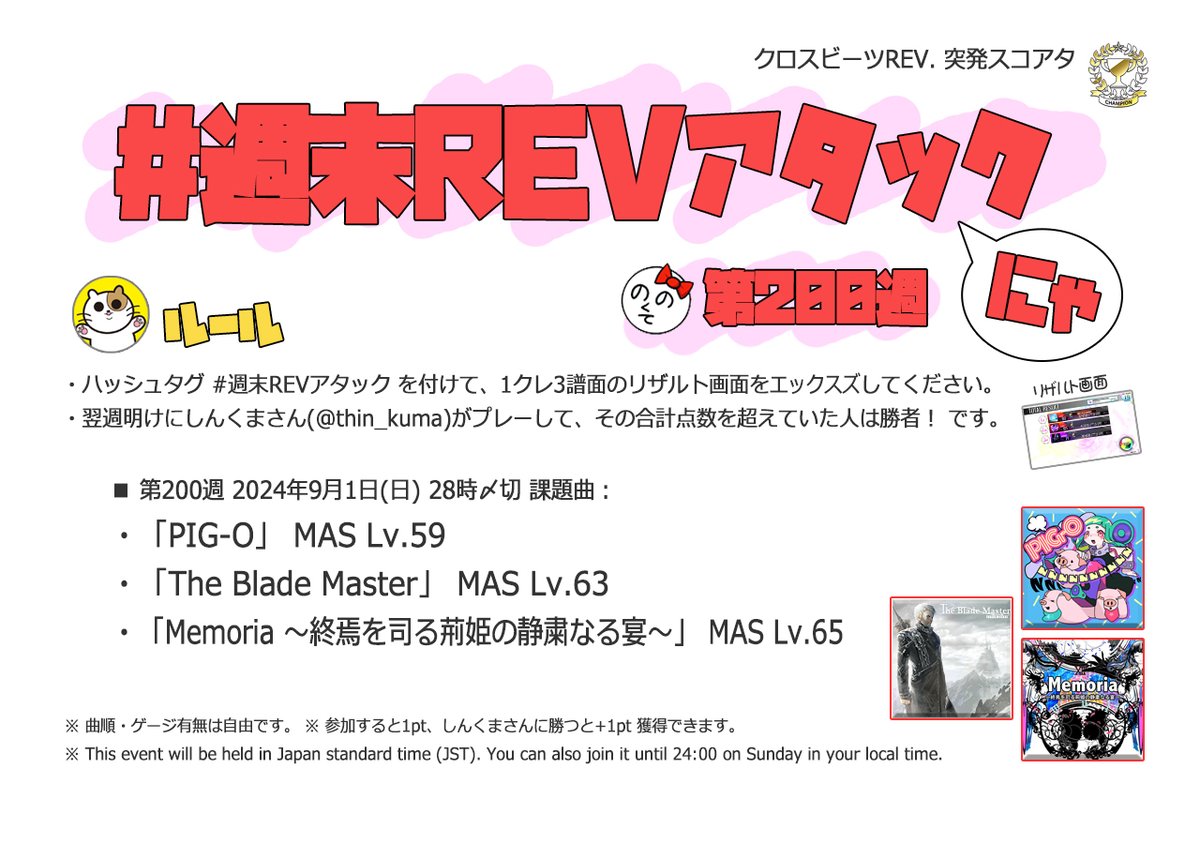 | #205 | 2024/10/6 | オオタニサン!Lv.54(HR)・Lv.59(盗塁)・BPM130(打点) | エンターテイナー(Remix ver.) 54 |