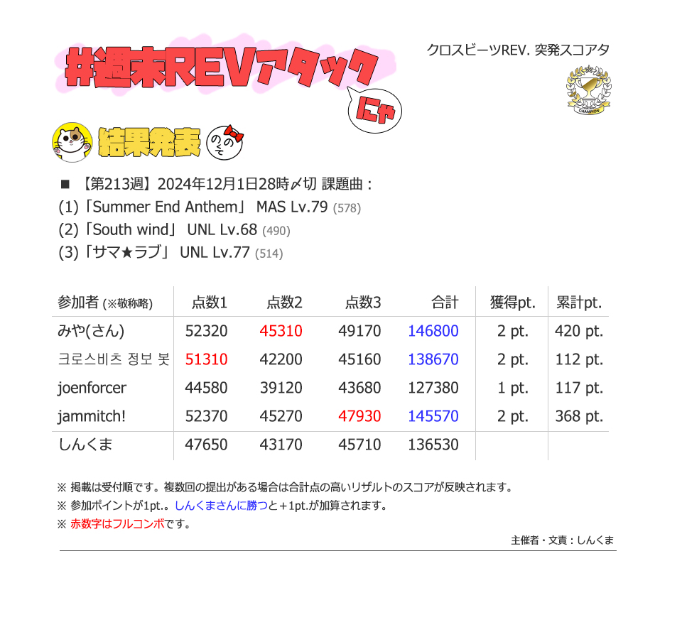 | #14 | 2020/12/13 | ローカルバトルで投げると人間関係に ひびが入るかもしれない譜面 |