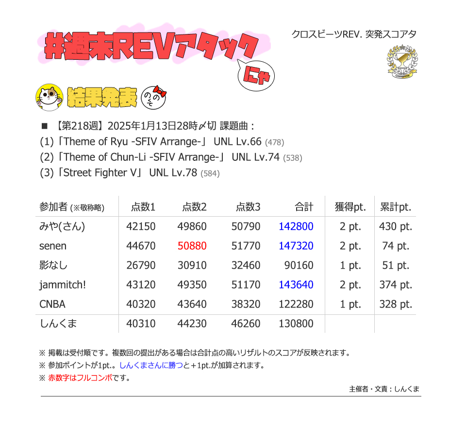 | #218 | 2025/1/13 | ストリートファイター特集 | Theme of Ryu -SFIV Arrange- 66 |