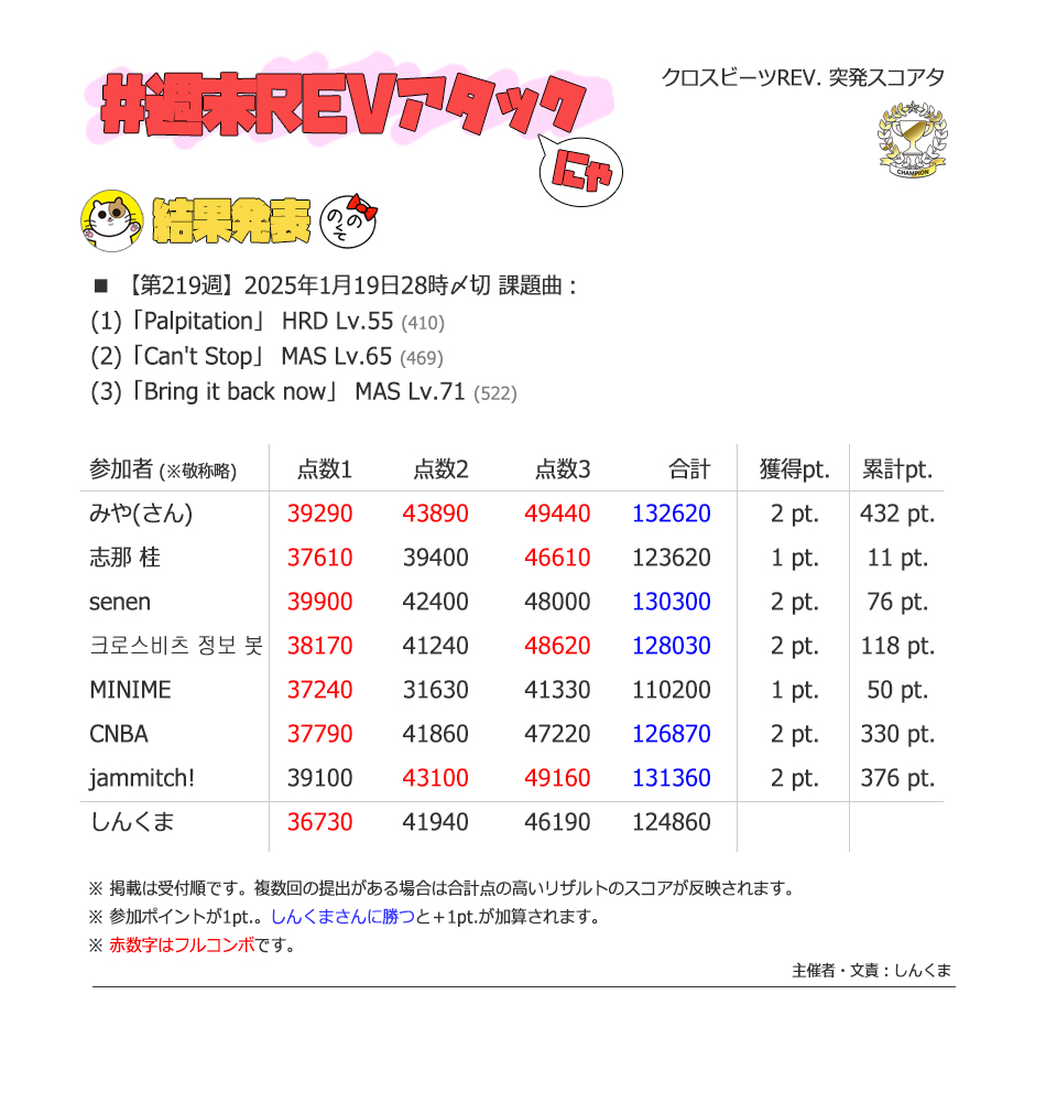 | #219 | 2025/1/19 | プレー時間が長い曲特集 | Palpitation 55 |